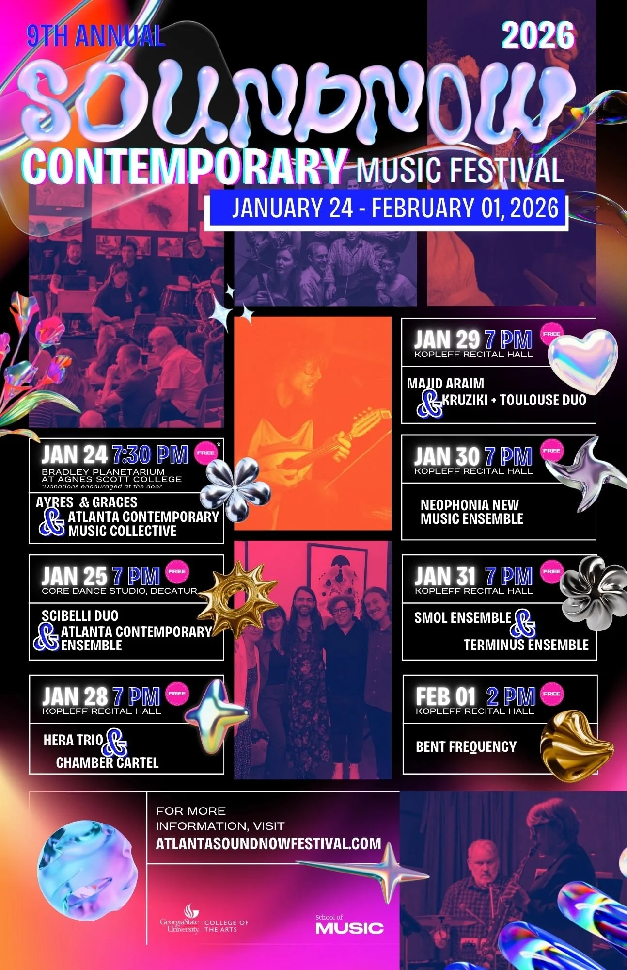 SoundNOW is thrilled to once again proudly present the very best in classical contemporary music as performed by Atlanta’s premiere new music ensembles. From January 24 - February 1, 2026, Atlanta audiences will once again have an opportunity to experience an incredible week of contemporary music as many of Atlanta’s best new music ensembles come together for a dynamic showcase of the city's vibrant new music scene!